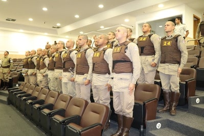 A Polícia Militar realizou a aula inaugural do VI Curso de Motociclista Militar Escolta e Segurança 2019 do Esquadrão de Motociclistas Águia, no auditório do Centro de Operações e Inteligência (COI) da Secretária da Segurança Pública, no CAB.